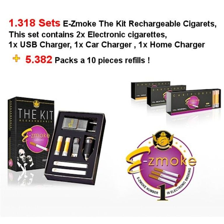 Celkem: 1318 Nastaví E-Zmoke - Kit - 2 nabíjecí Elektronická cigareta Kit s celkovým: 5382 Balení 10 ks náplní!