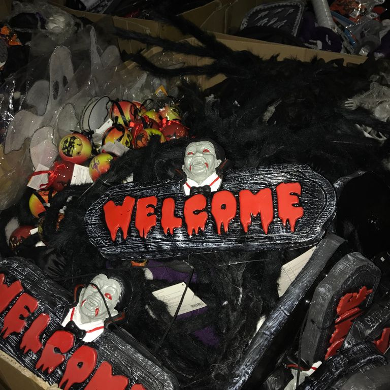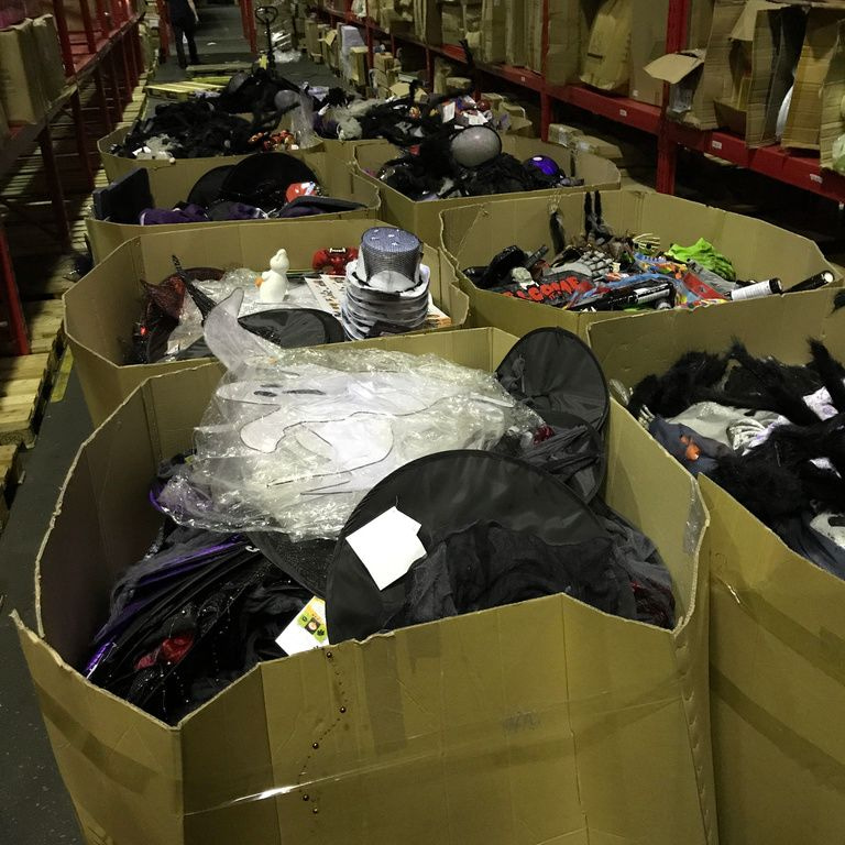 9x Palletboxen with mix Halloween items. Pallet size: 120 x 80 x 100 Cm.