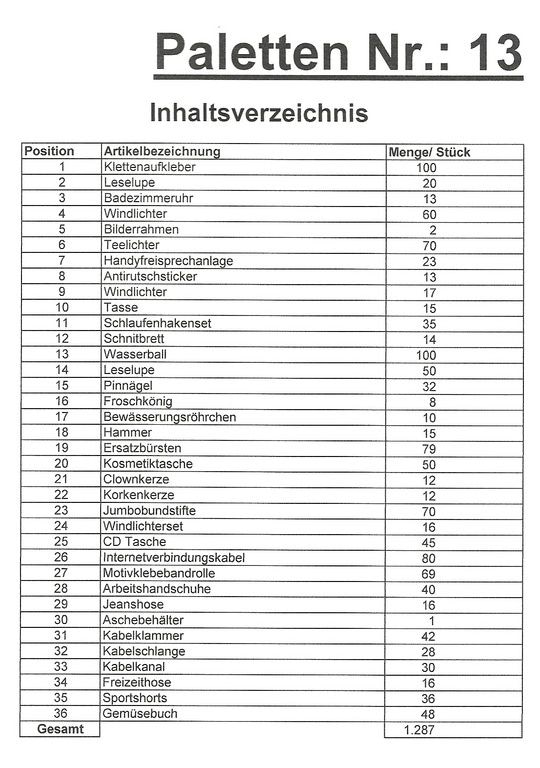 Obsah palety: 1,287 St několik článků!