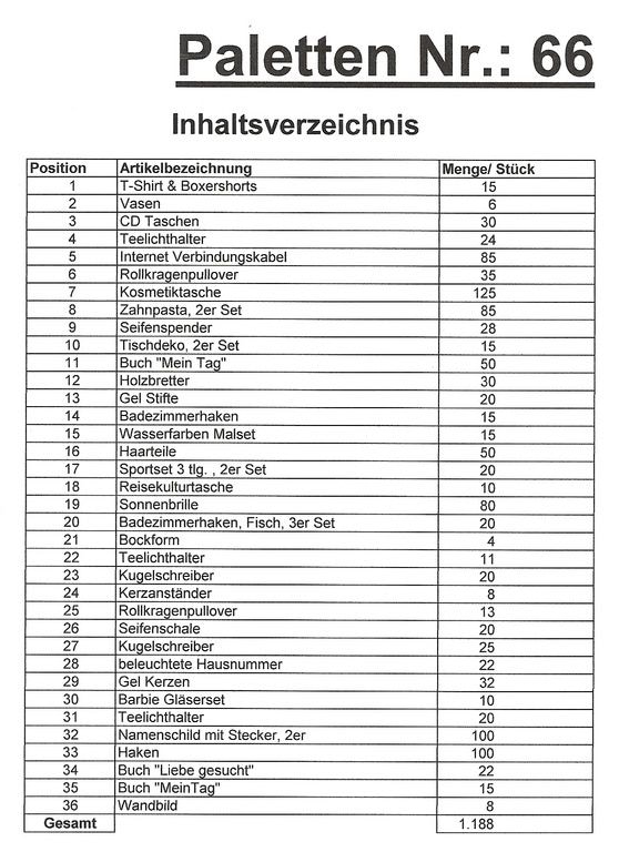 Obsah palety: 1,188 St několik článků!