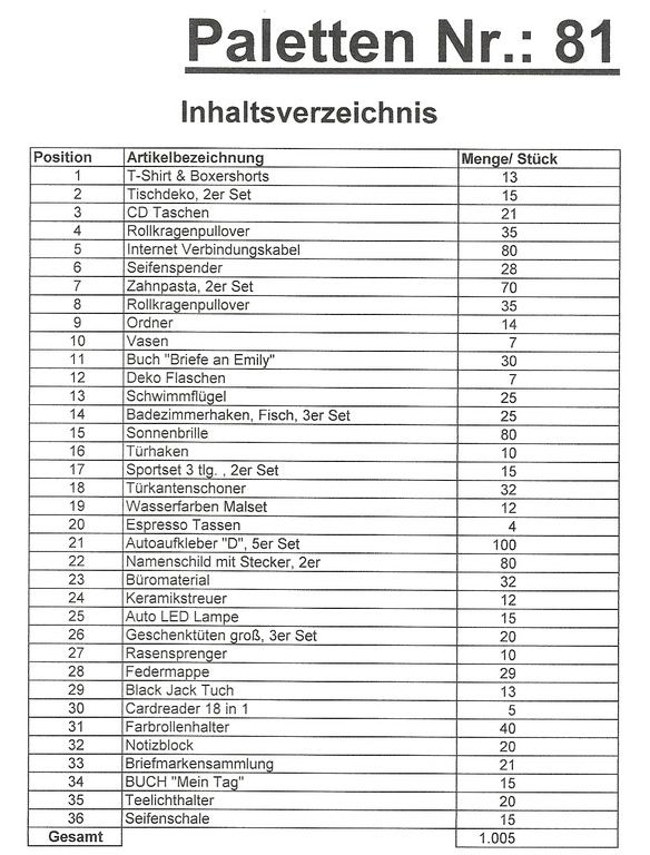 Obsah palety: 1,005 St několik článků!