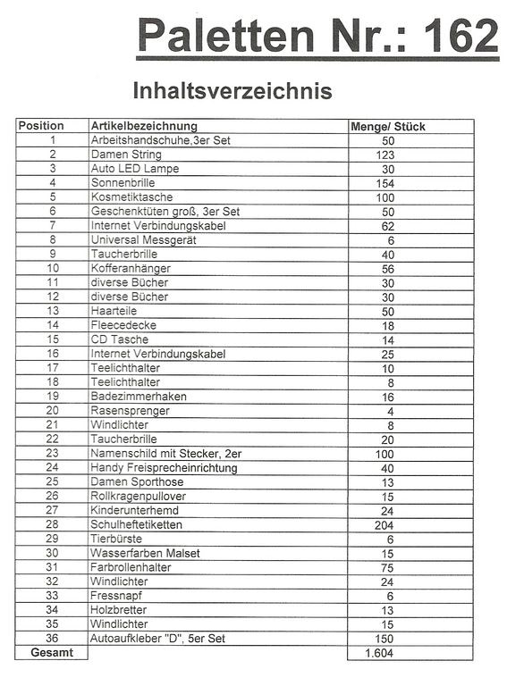 Obsah palety: 1,604 St několik článků!