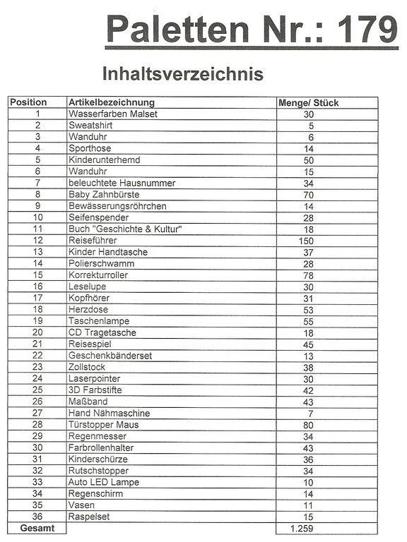 Obsah palety: 1,259 St několik článků!