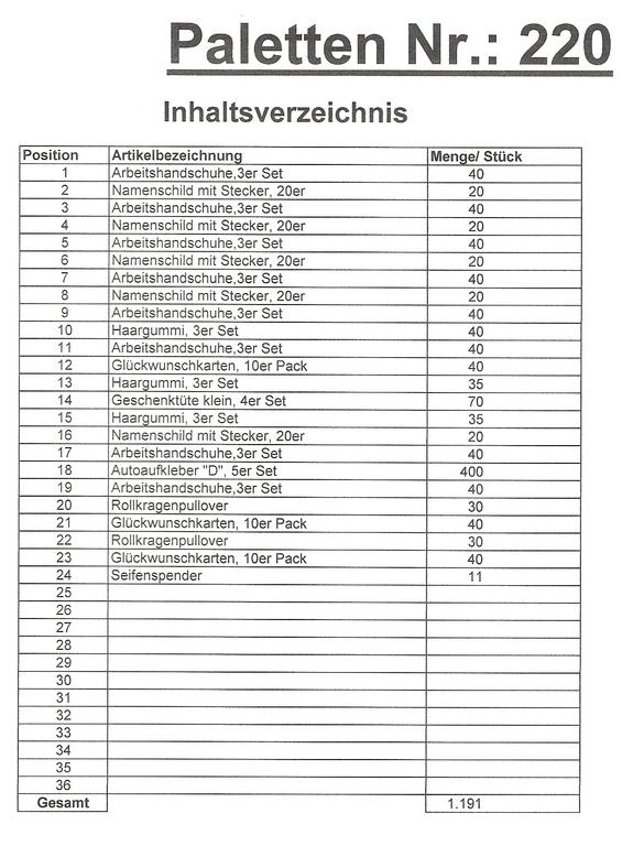 Obsah palety: 1,191 St několik článků!
