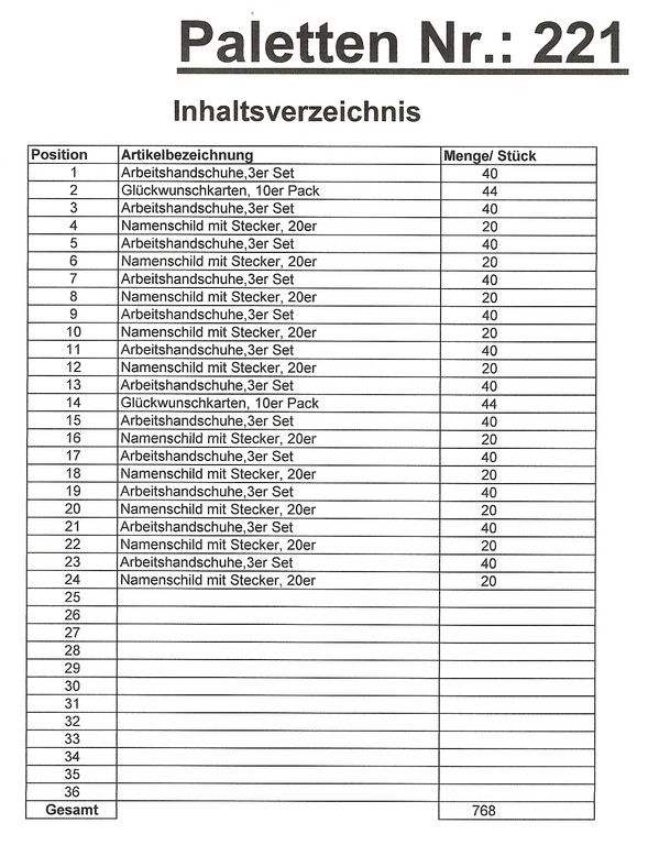 | Obsah na paletě | 1 kusů |