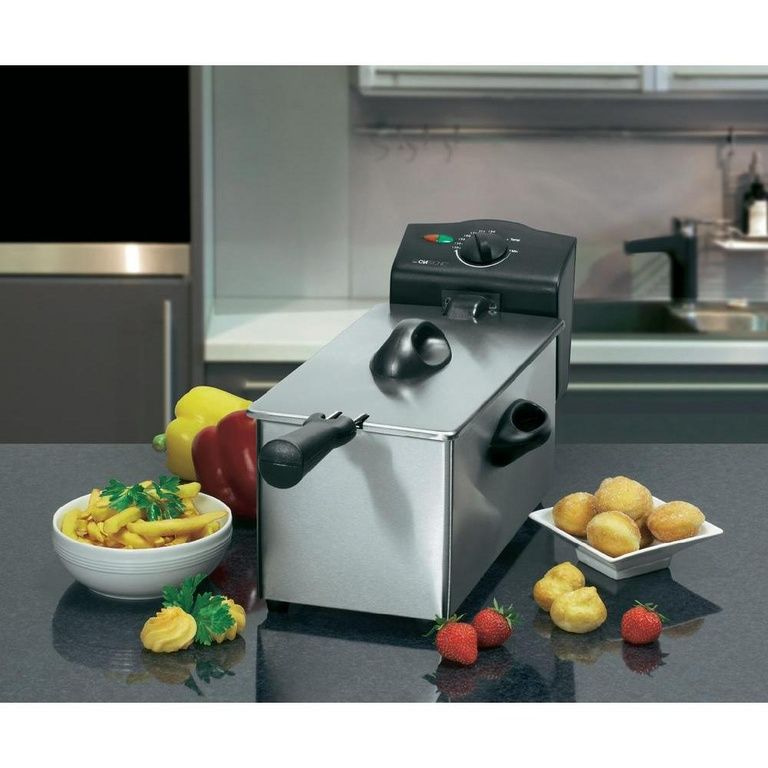 V této fritézy je topná spirála přímo do tuku, což umožňuje rychlý ohřev a bez zápachu smažení je zaručena. Bydlení, víko a topná spirála jsou vyrobeny z nerez oceli. Studená zóna technologie, Kapacita: 3 litry tuku / oleje, maziva Odnímatelná nádrž.