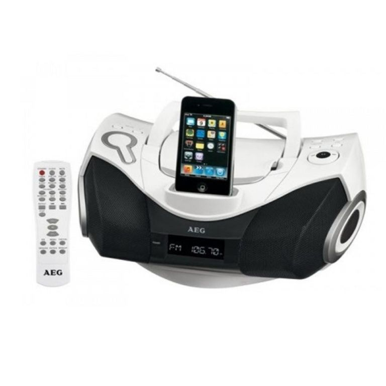 Ideální pro mobilní použití! AEG Rádio Rekordér SR 4337 iP má hodně co nabídnout: iPhone / iPod přehrávání a nabíjení funkce, dálkové ovládání, stereo PLL tuner a čtyři stereo reproduktory. Název vyhledávání a náhodné funkce integrovaného přehrávače CD lze snadno číst na displeji LCD. Rádio je vybaveno LED stereofonním zvukem a teleskopickou anténu, a také má více než 30 předvoleb.