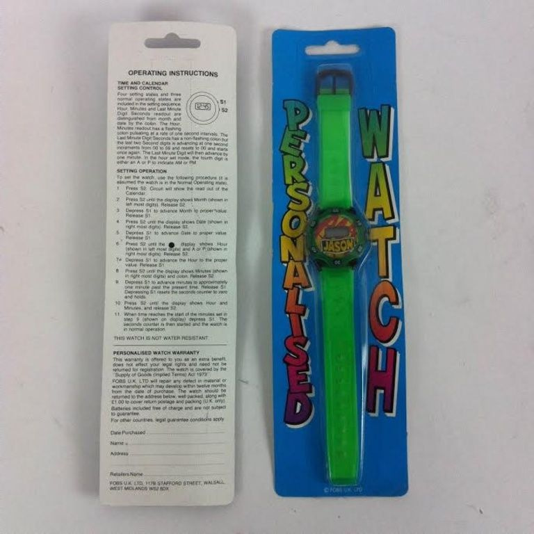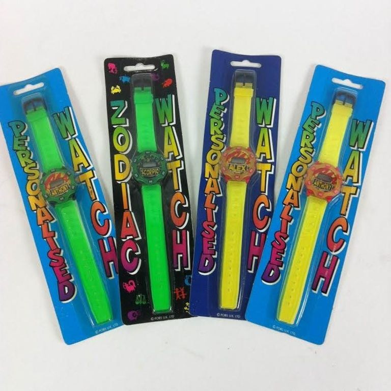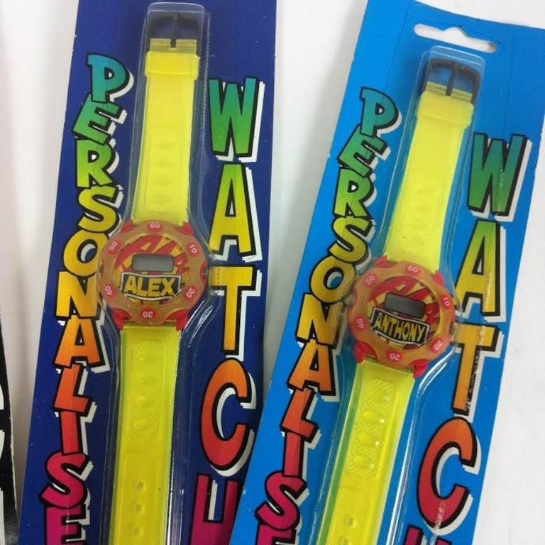 Dětské hodinky baleny karty nesoucí různá jména: