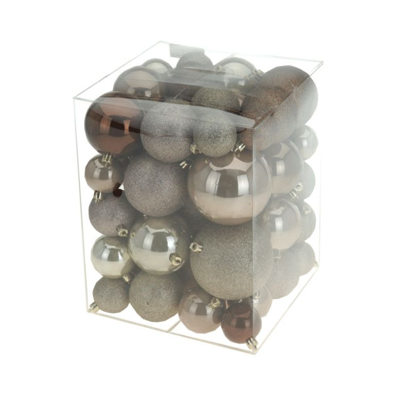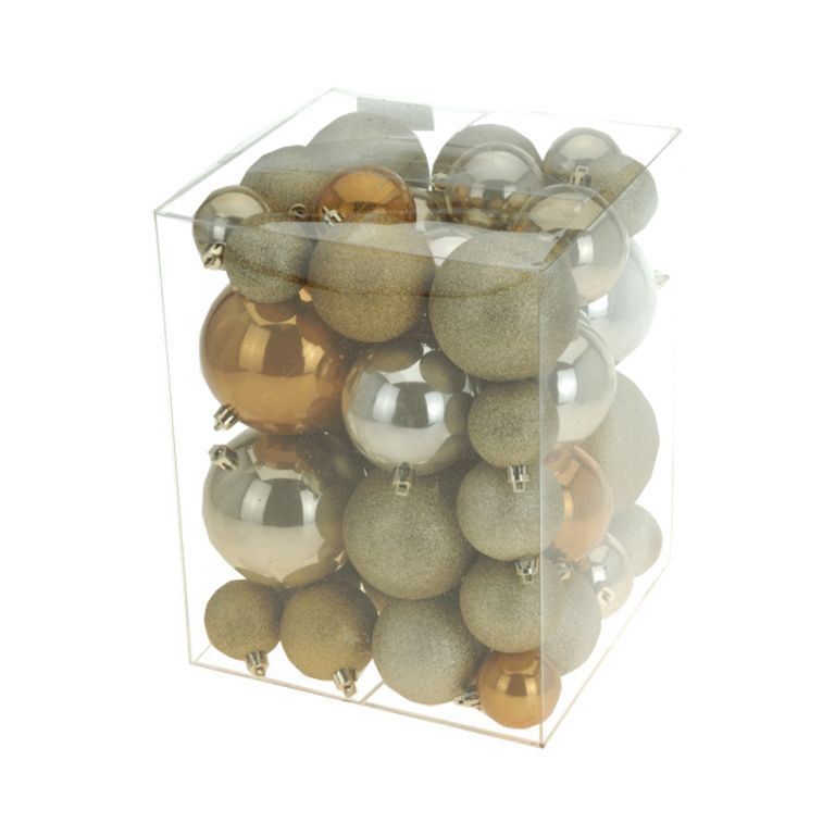 Vyzdobte si svůj strom v letošním roce se zlatými a hnědé koule. Barvy tohoto roku. S tímto balíčkem vám dává najednou různé typy a velikosti cetky doma.